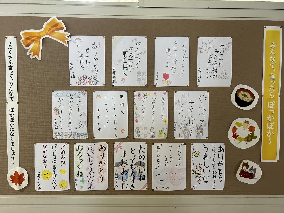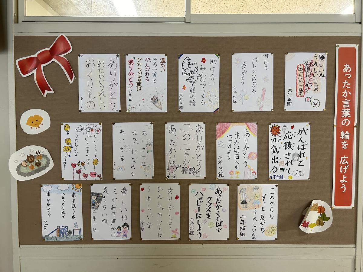 各クラスごとに考えた、あったか言葉についての掲示を作りました。