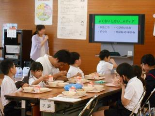 児童は真剣に話を聞き、給食も残さずしっかり食べていました。