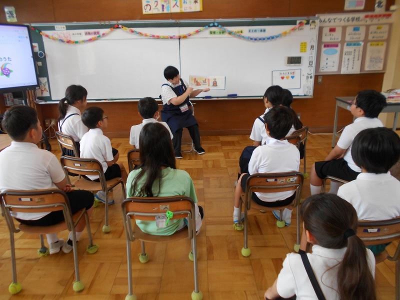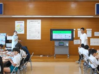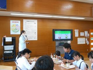 健康にすごすために、どんなことに気をつけたらよいかを、養護教諭と栄養教諭が給食時間に交代でお話ししています。