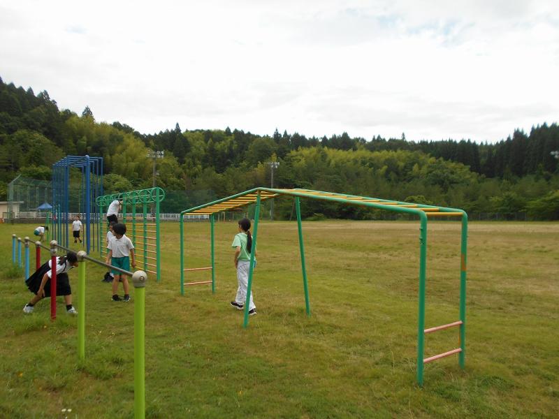 低学年から高学年までみんなで仲良く鬼ごっこをしたり、運動したりしていました。
