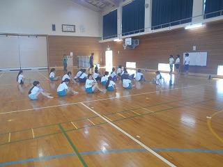 4年生は、頑張りたい技を全校児童・先生方の前で宣言してから、技に取り組みました。