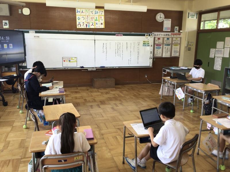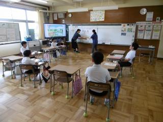 笠野小、刈安小のお友達とオンライン授業で交流を行いました。