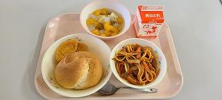 「あげパン、オムレツ、キャベツのソテー、コンソメジュリアン」とみんなが大好きなメニューです。