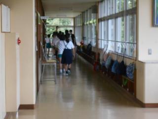 今日はお昼から6年生が中学校へ見学会へ行きました。