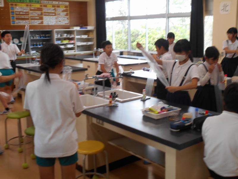 理科の授業では、二酸化炭素をつくり、二酸化炭素の性質を試す実験を行いました。身近なチョークを使って、二酸化炭素をつくることができると知り、驚きの声があがっていました。