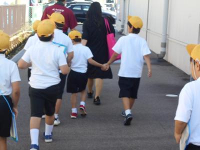 避難の様子だけではなく、お話が終わって、校内へ戻る時もしゃべらず移動しており、立派でした。
