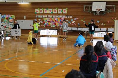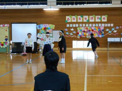4,5年生は司会や各学年の発表準備中のクイズなど、会全体を進めたり盛り上げたりしてくれました。