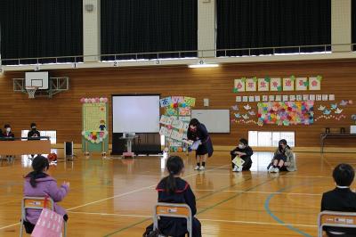 1~3年生は、朝学習の時間に、学校図書館司書に読み聞かせをしてもらいました。