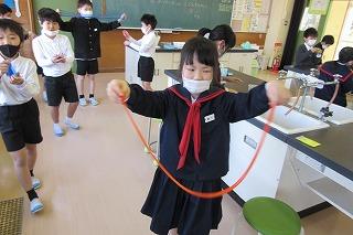 今日の3~4限に、津幡町こども科学館の館長さんをお招きして、科学教室を行いました。