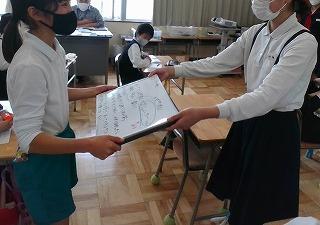 「明るい学校」「全校の仲が良い学校」「コロナ0の学校」など6年生なりに一生懸命考えてくれた言葉がとても印象深く感じられました。次のリーダー4・5年生はそれらの言葉と6年生が考えをまとめた用紙やボードをしっかり受け止めていました。