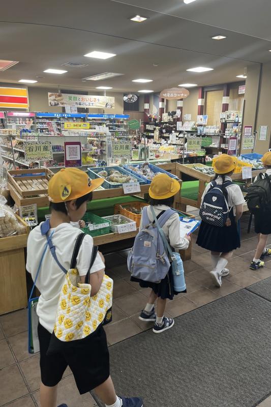 倶利伽羅塾では、お風呂に入ることや宿泊することができるなど、施設を利用する人のためにたくさんの「いいね!」を見つけることができました。また、津幡町の地元で作られた野菜なども売られていて、お客さんに安心して買ってもらえる工夫も見つけることができました。塾長さんに、「どうしてこの倶利伽羅塾の名前がついたのですか?」「何年にできたのですか?」など、気になったことを質問する姿も見られました。