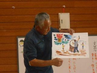 河原市用水の昔と今についてや中橋久左衛門さんについてのお話を、今井さんお手製の紙芝居を交えて聞きました。