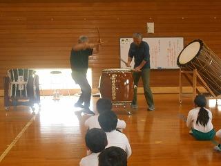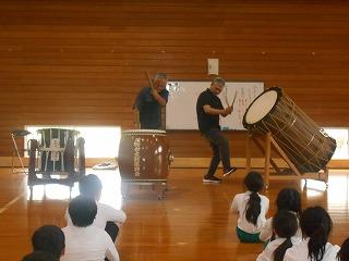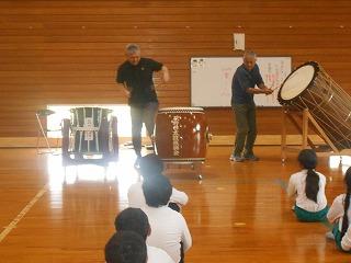 今日は、毎年太鼓を教えてくださる山本さんと息子さんが、学校に来てくださいました。