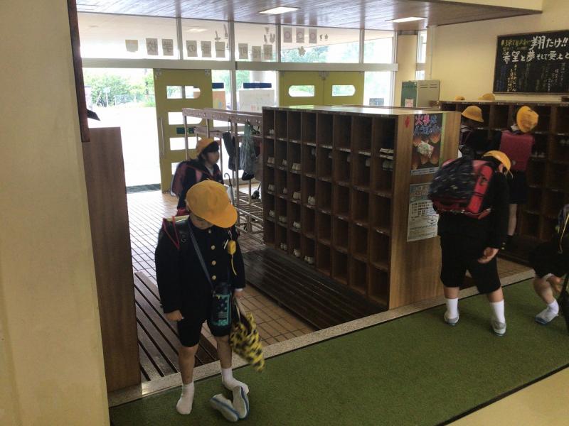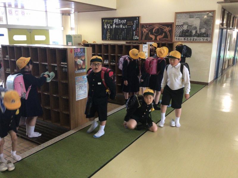 玄関だけでなく、下足箱で靴を履き替えているときも、「〇〇さん、おはよう!」、「うん、おはよう!」と友達同士であいさつを交わす姿も素敵でした。。