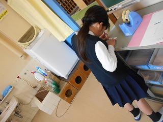 健康委員会の様子です。欠席者記入やせっけん補充をしています。