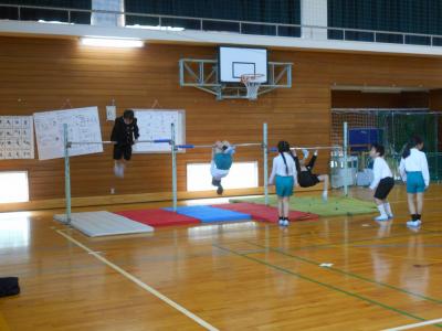 今日の午後、4年生が中条小へ行き、町の器械運動交歓会に参加しました。