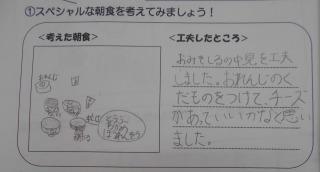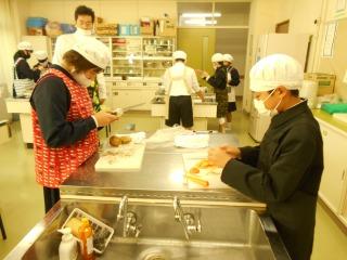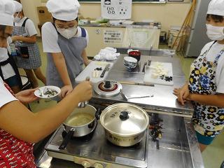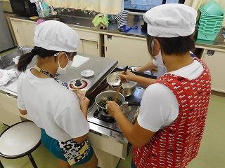 みそ汁は、具の豆腐、わかめ、ねぎの切り方やみその量に気を付けながら作りました。どのグループも少しずつみそを加え、味を確かめながら作ったのでおいしくできました。