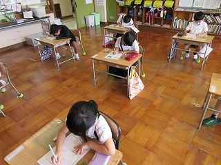 一生懸命、集中して書く姿があちこちで見られました。落ち着いた雰囲気でよいスタートが切れたはぎのっ子たちでした。作品は展示コーナーに掲示してありますので、ぜひご覧ください。