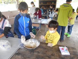 お米は火加減に気を付けながら炊きましたが、鍋の中の状態がわからず、少しだけおこげができたグループもありました。