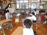 ソーシャルディスタンスに気をつけながら朝の歌を歌っています。