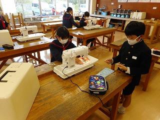 5年生は、12月の初めから家庭科の時間で取り組んでいたエプロンが、今日完成しました。