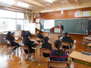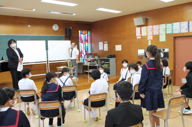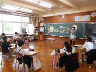 4年生が、社会科で河原市用水のことについて、河原市用水の事務局長さんをお招きして、お話を伺い教えていただきました。