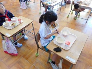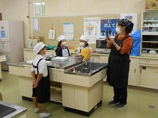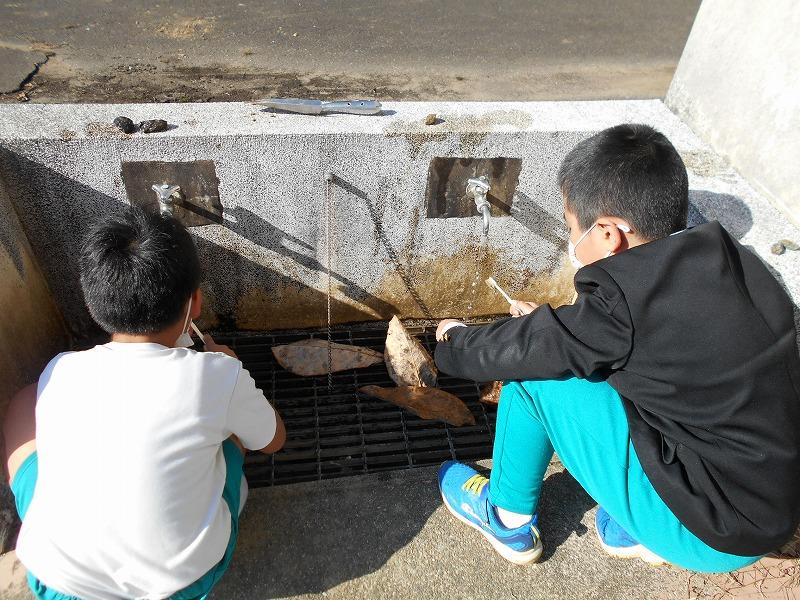 2限目には、お米の量をはかり洗うことと、みそ汁の「だし」に使う煮干しの頭とはらわたを取りました。お米は吸水させるために、煮干しはだしをださせるために、5限目まで置いておきました。