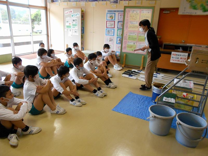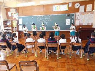 今日のお話を聞いて、1,2,3年生が明日4,5,6年生にお世話の仕方を説明しにいきます。