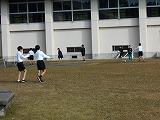 体育館でバレーボール、ドッチビー、だるまさんが転んだをしました。隣で2・3年生もお楽しみ会をしていました。