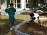 朝学習の時間に、全校児童で、運動場の石拾いをしました。