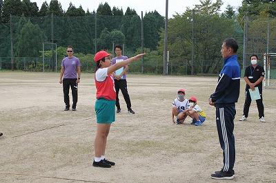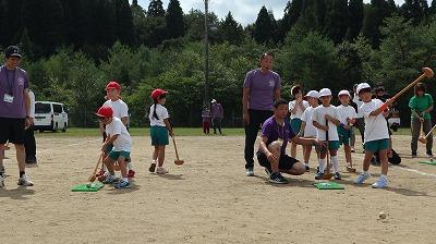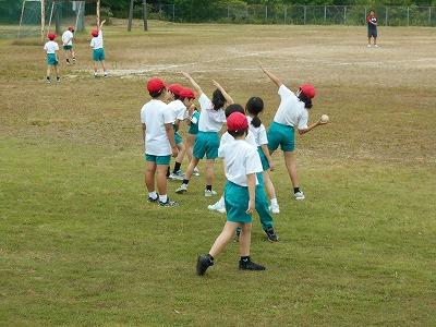 4年生は遠くにボールを投げるコツを、やさしく3年生に教えてあげていました。