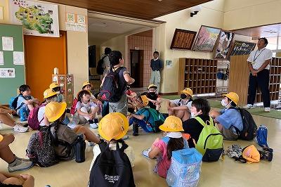 消防署の吉田さん(6年生の琉唯さんと莉子さんのお父さん)を招いて、訓練が行われました。