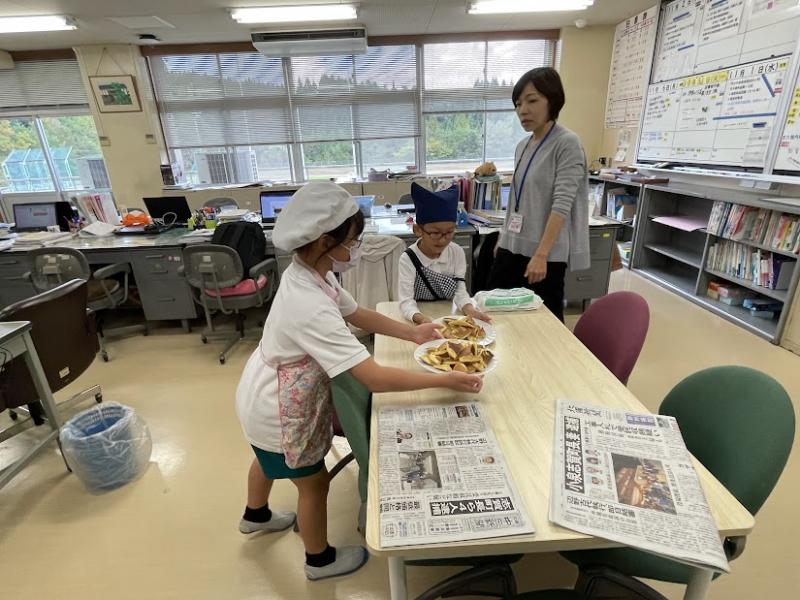 焼けたお芋は給食の後に、いただきました。
