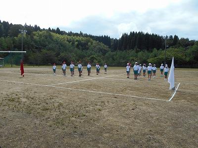 3~6年生は緊張した様子を見せながらも、みんなで円陣を組んで気合を入れて出発しました。