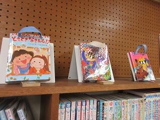 図書館司書の先生が、図鑑などの本のカバーを利用してバッグを作ってくださいました。