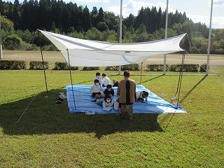 夏のときほど気温は高くないのですが、日差しは強いです。ぽかぽか陽気の中、テントの中は日差しが弱まり、とても快適で、気持ちよく読み聞かせを聞くことができていました。