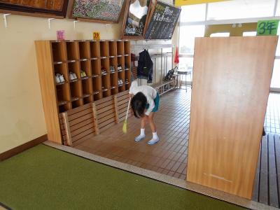 最初に6年生を中心に、場所の分担や掃除方法を確認してから、お掃除開始です。