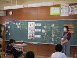 4・5年生は、道徳の授業でした。運動会で披露した太鼓の演奏を指導してくださった山本さんをゲストティーチャーにお招きして行いました。