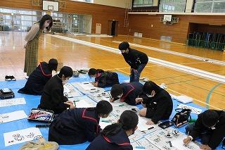 今日の5,6限目に、金沢美術工芸大学から荒木先生と3名の補助の学生さんをお招きして、美術教育特別授業がありました。