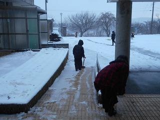 また、日中は公民館の館長さんが両側の坂道の歩道を歩きやすいように除雪してくれました。