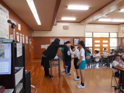 津幡警察署と町の防犯委員の方をお招きして授業を行いました。