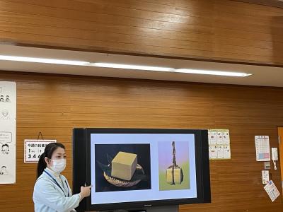 子供たちの中には、堅豆腐について知らない子もいたようで、栄養教諭の方からお話がありました。