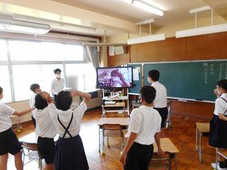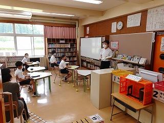 自分が作った短歌を、教室の友達だけでなく、他の小学校の児童に感想を言ってもらっていました。両校の児童はとても楽しそうに授業を受けていました。