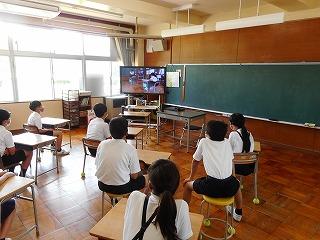 6年生が、刈安小学校と笠野小学校とが、オンラインで授業をしている様子を参観しました。