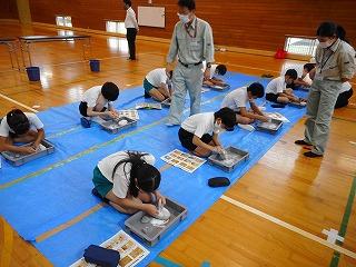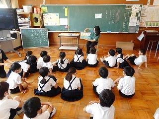5,6限目に6年生が縄文人の生活について学習しました。石川県埋蔵文化センターの方に来ていただいて教えてもらいました。はじめに、昔の人の食べ物、土器などについて教えていただきました。この縄文時代には弓矢が使われていたことも教えていただきました。最後に、まが玉づくりを体験しました。自力で石を削ることの大変さもわかりました。