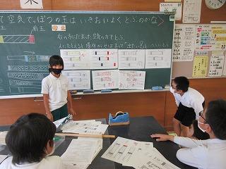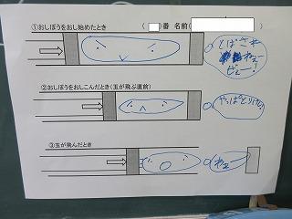 何度も空気でっぽうで玉を飛ばして自分の考えを発表しました。