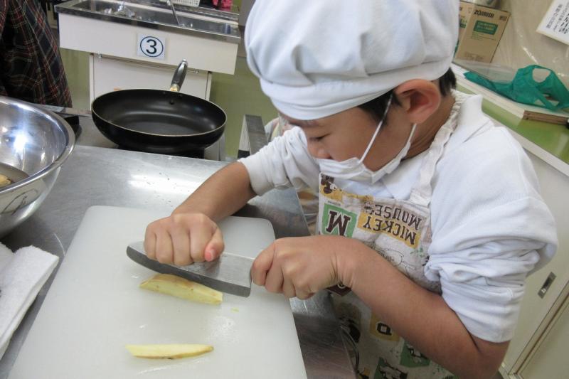 5,6限目に2,3年生が自分たちが育てた「まこも」、「そうめんかぼちゃ」と「さつまいも」の調理に挑みました!