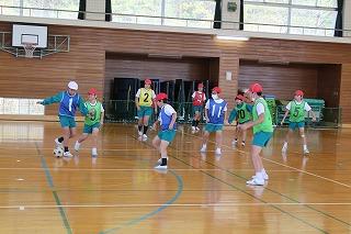 今日の体育では、4~6年生が体育館でサッカーをしていました。