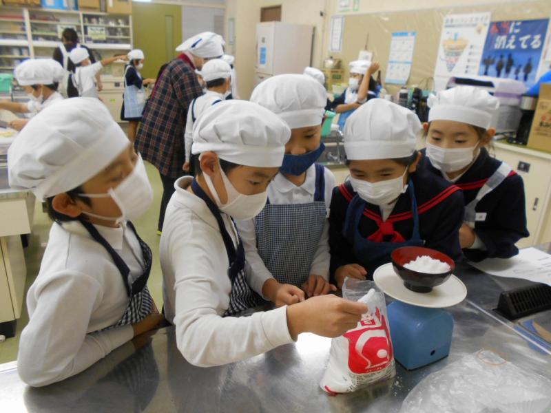 5年生は、家庭科の時間に、日本の伝統的な日常食であるご飯とみそ汁をつくりました。