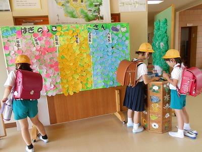 萩野台小学校ではお友達のよいところを「キラリ☆さんカード」にかいて掲示板に貼っています。